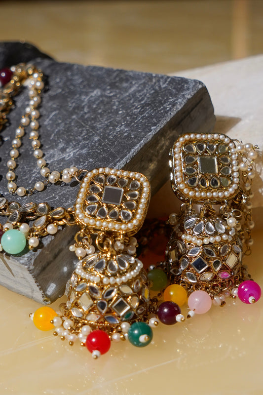 TASBEEL- Jhumka Chain Earrings with Tikka Set